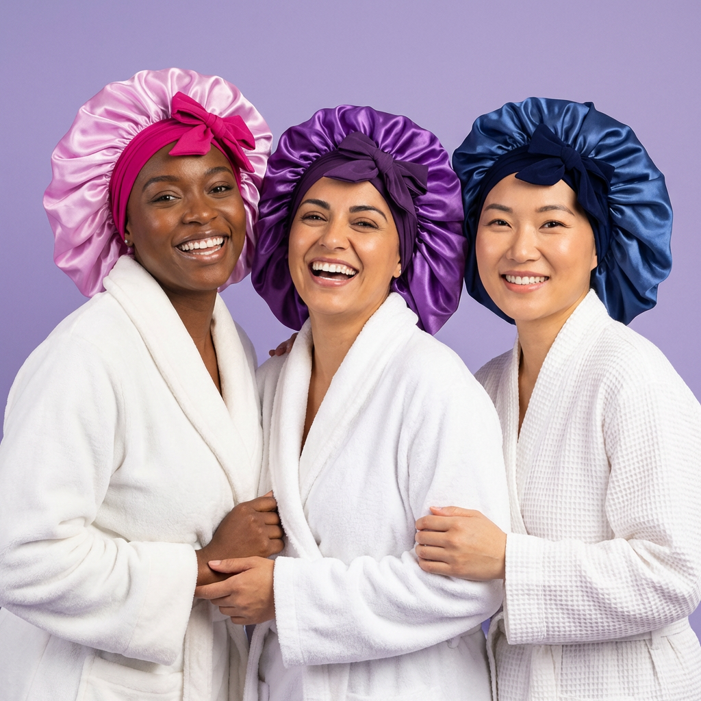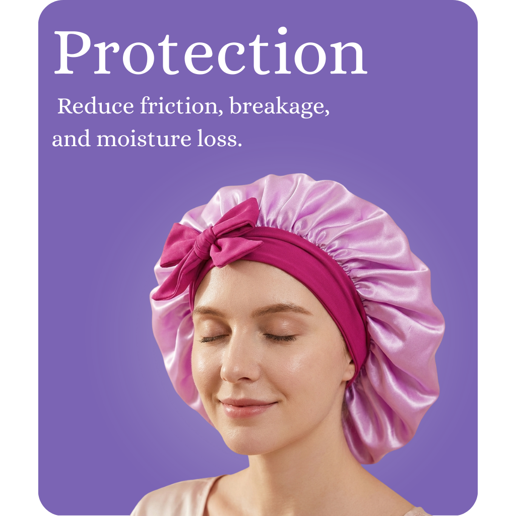 Our satin hair bonnet helps reduce friction, lock in moisture, and protect your hair overnight—so you wake up with smoother, healthier hair.